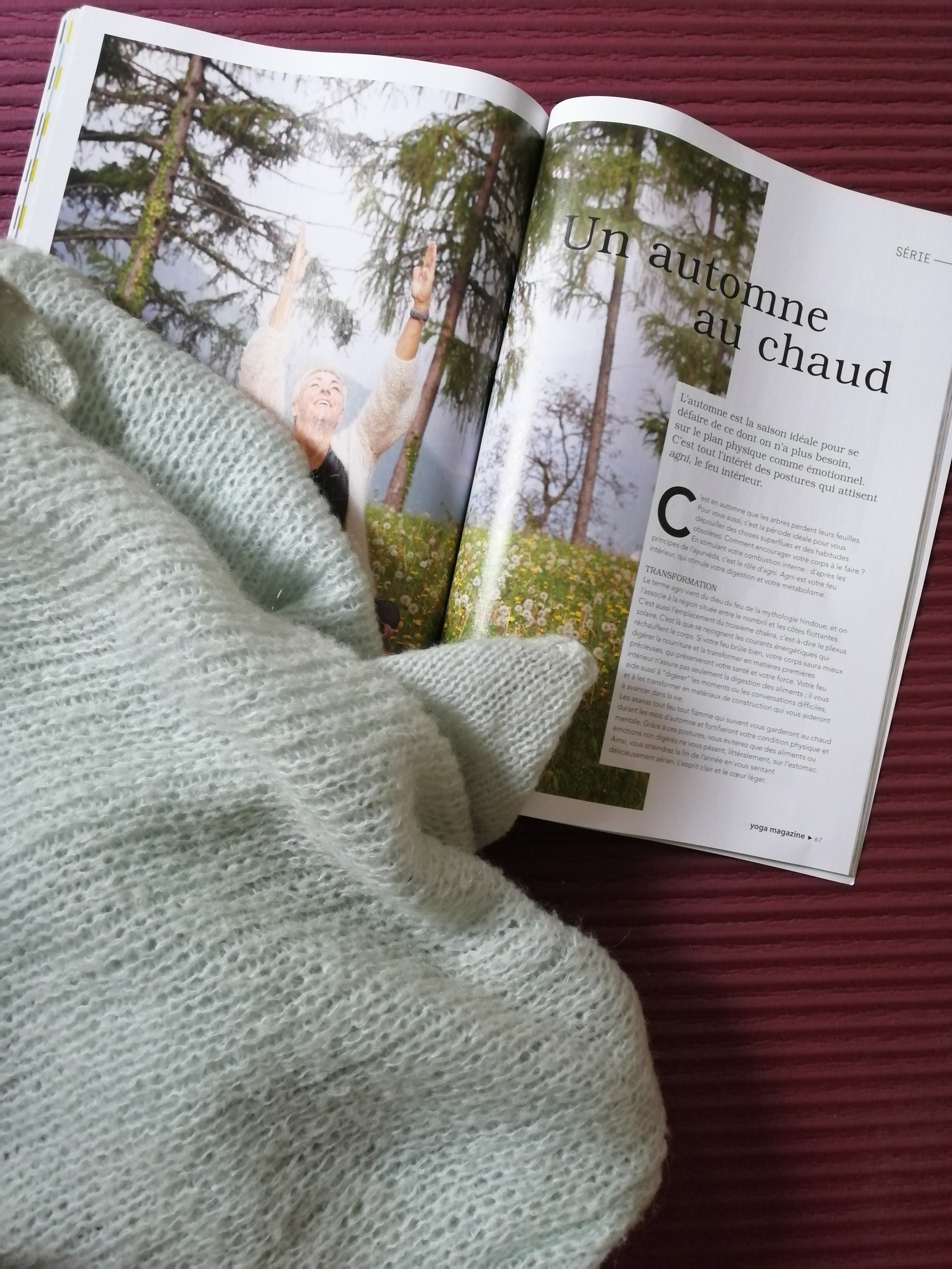 J’aime ces rendez-vous avec lui, lorsque j’enchaîne postures et respirations bienfaisantes pour le corps et l’esprit. J’ai d’ailleurs découvert au mois d’octobre, un bel enchaînement d’automne dans le magazine Yoga, un enchaînement pour attiseragni, le feu intérieur. Il semblerait que l’automne soit la saison idéale pour se défaire de ce dont on n’a plus besoin, sur le plan physique comme émotionnel…alors comme les arbres qui perdent leurs feuilles en automne, c’est une période idéale pour soi aussi de se dépouiller des choses superflues et des mauvaises habitudes ou celles dont on peut se passer. Bref, vous l’aurez compris, c’est une découverte coup de coeur que cet enchaînement et cette façon de s’occuper de son corps après une journée fatigante ou pas d’ailleurs, en particulier en ces mois troubles et préoccupants, où il nous faut « digérer » bien trop de mauvaises nouvelles et de mauvaises ondes…. Mais je n’oublie pas non plus de saluer le soleil parce que là aussi c’est un enchaînement de postures très bénéfiques pour la respiration et le coeur… C’est d’ailleurs pour cela que j’ai repris les petites séances à l’école avec mes loulous de 4 et 5 ans et franchement ils adorent et c’est incroyable ce que la respiration au carré leur fait du bien et les aide à retrouver le calme et la sérénité. Vous avez déjà essayé ?