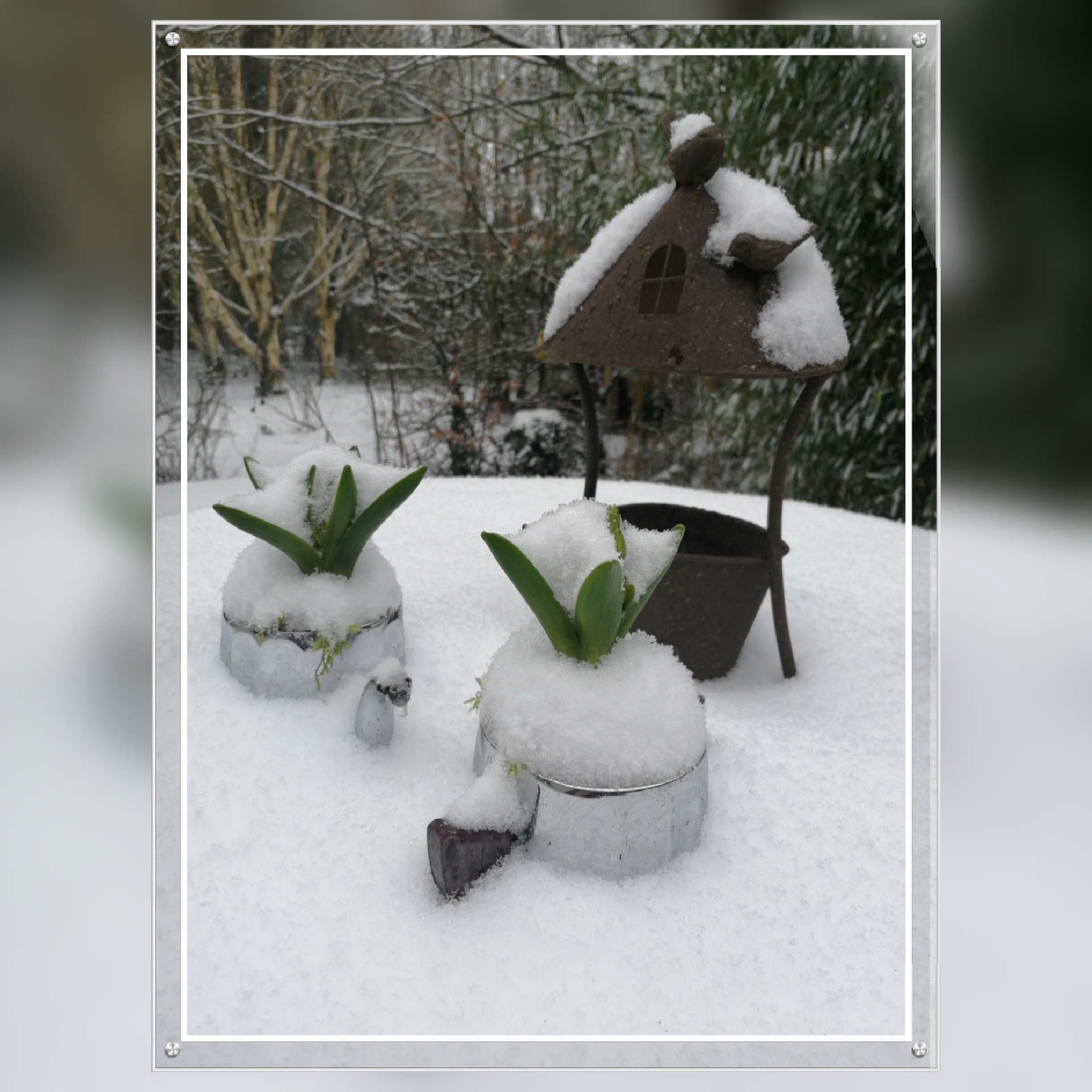 Et même si la pluie a pris le relais assez vite après ces épisodes hivernaux … C’était bien agréable d’aller au jardin le matin pour prendre quelques photos sous la neige… Rentrer au chaud près du poêle, prendre un café, lire, regarder la neige tomber et les oiseaux chercher quelques graines …