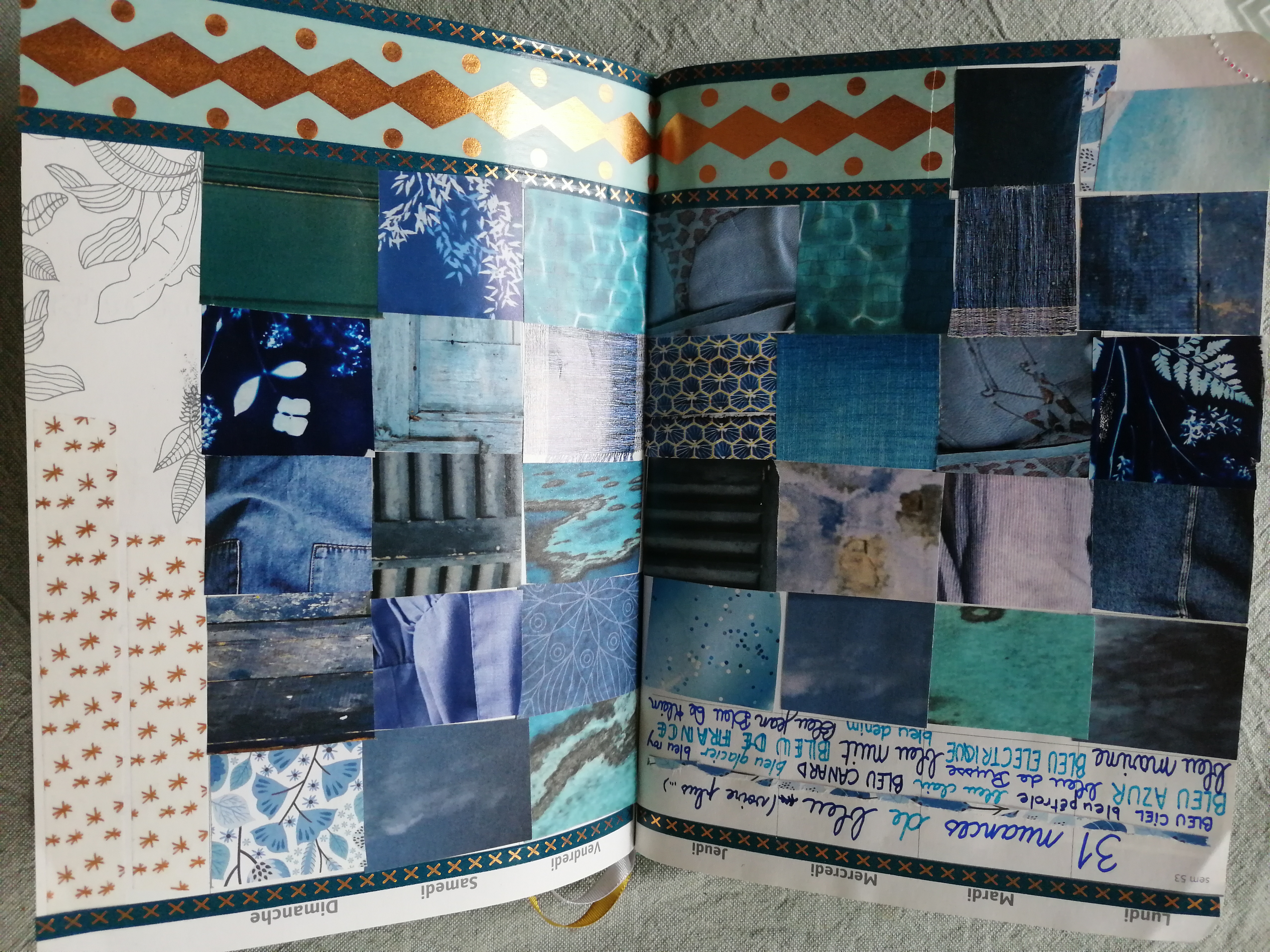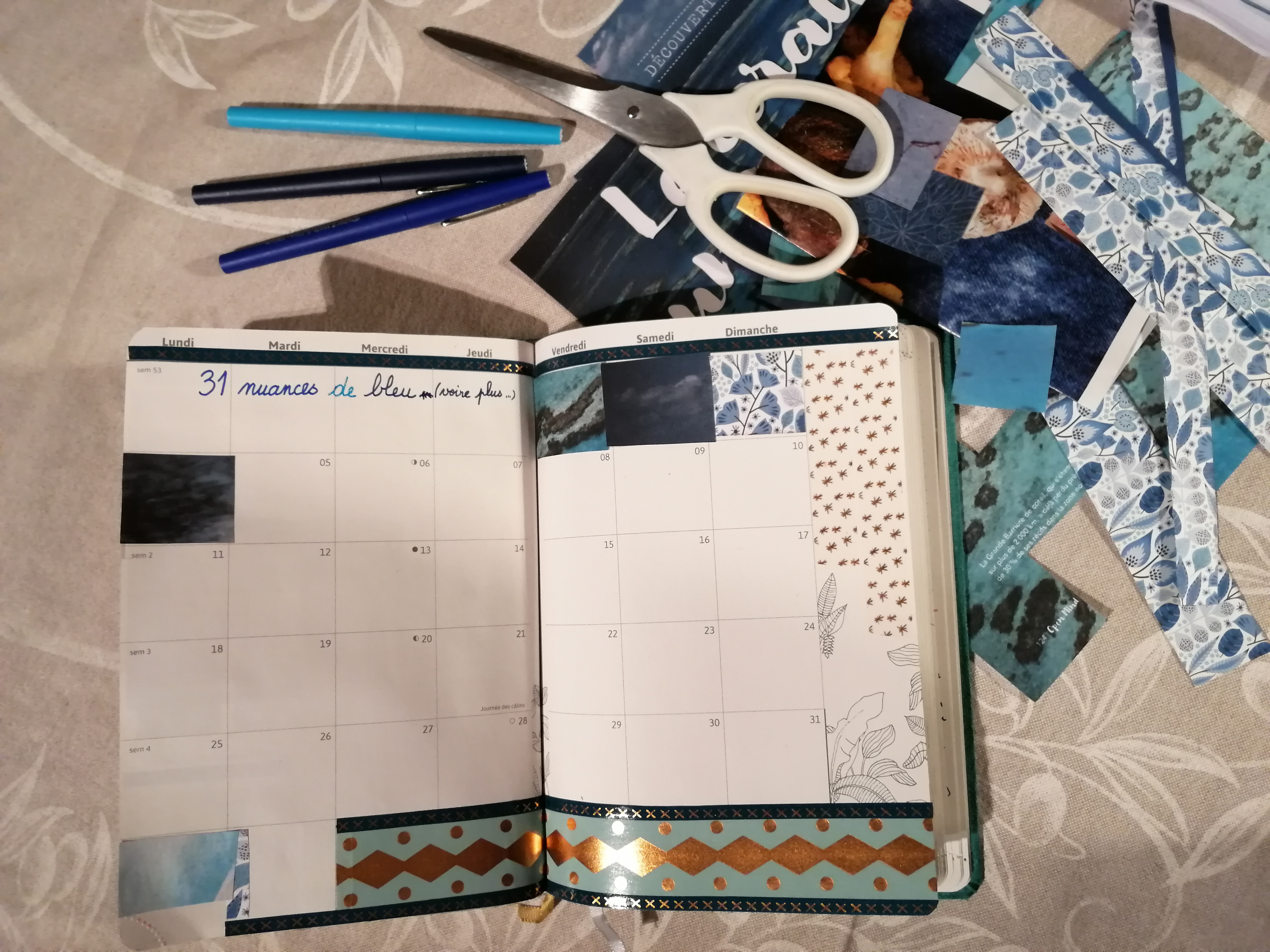 Alors voilà, je suis partie pour un mois et une double page de 31 nuances de bleu… Et peut-être un peu plus même…