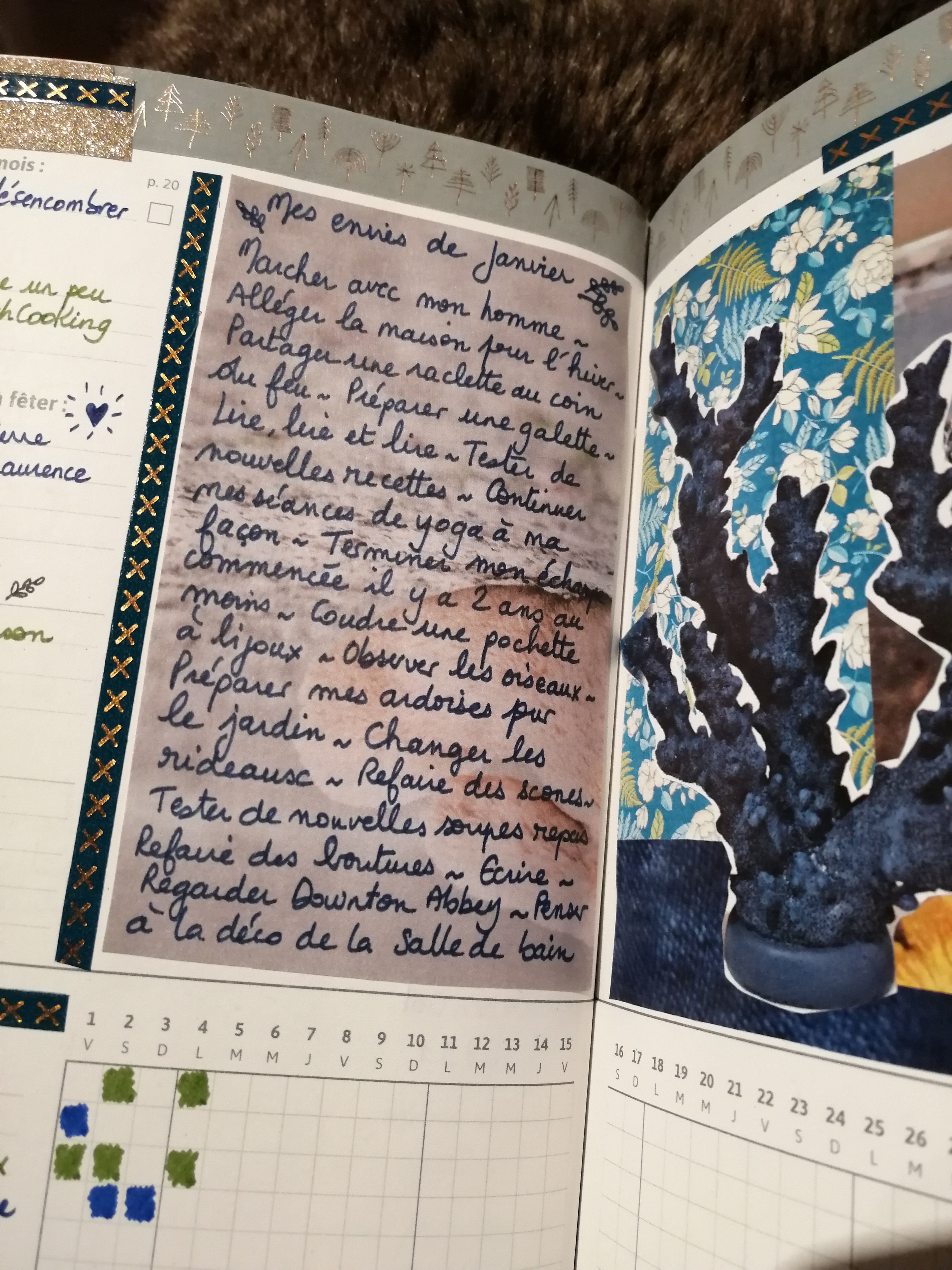 Et puis c’est très curieux mais en regardant dans mes anciens bujo, je me suis aperçue que j’associais souvent le bleu à ce premier mois de l’année…