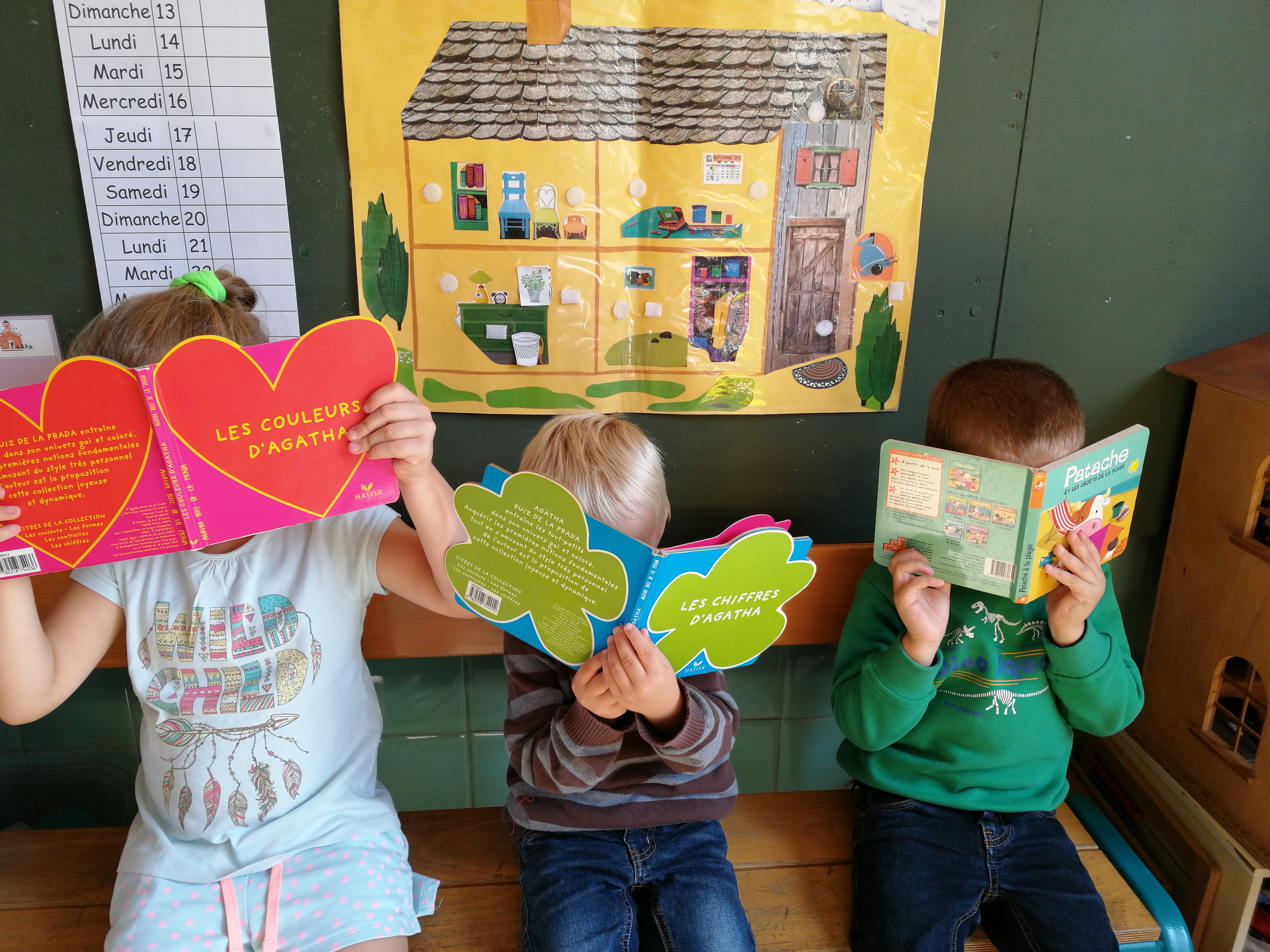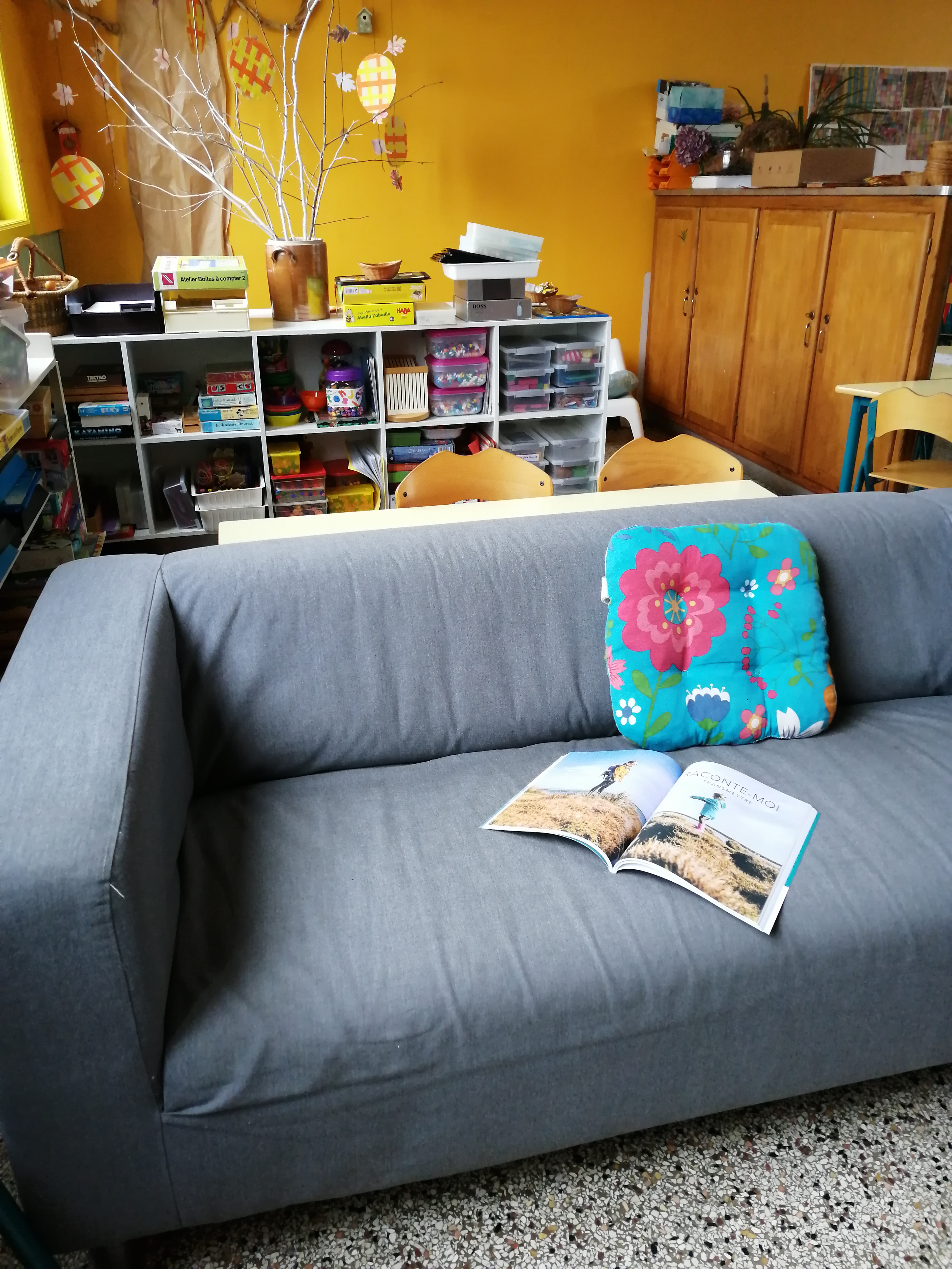 Nous ne sommes qu’en avril mais nous pensons déjà à notre grande sortie en forêt, qui n’est pas très loin, à quelques kilomètres, une sortie à la journée pour marcher, courir, chanter et profiter de l’ombre des arbres parfois centenaires ! Et puis viendra le temps de notre pique-nique avec les familles, un pique-nique sans emballages, puisque désormais, tout le monde a bien intégré un monde sans plastique, et apprécie les repas et encas faits maison …les enfants adorent cette journée au grand air où les stands de jeux en mode récupération sont installés ! Les enfants troquent leurs petits cailloux gagnés contre des jeux ou des livres qui ont été donnés à l’école. Ce jour là on chante, on danse, on partage et on invite les parents et les habitants à venir découvrir nos œuvres artistiques réalisées tout au long de l’année…La merveilleuse médiathèque accueille d’ailleurs avec grand plaisir ce ras de marée de couleurs et d’artistes qui nous ont inspirés ! C’est un partenaire qui continue d’être précieux car nous n’avons plus besoin d’acheter de livres, les étagères et les bacs de la médiathèque en regorgent ! Ce sont trois de mes anciens élèves qui reprendront d’ailleurs bientôt le flambeau, une vraie fierté pour la maîtresse que je suis de les voir autant aimer la lecture et d’avoir réussi à leur faire dépasser leurs difficultés de langage lorsqu’ils étaient petits.