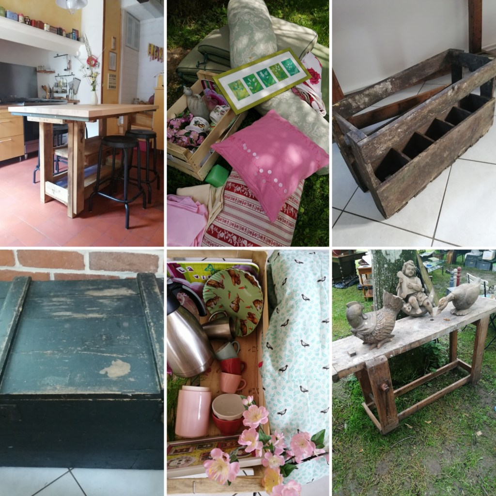 Pour celles et ceux qui me connaissent, vous savez combien depuis quelques mois j’attache de l’importance à notre façon de consommer…consommer moins, mieux, avoir le réflexe seconde vie pour tout nouveau projet d’aménagement du jardin ou de la maison… Nous avions très envie de changer notre espace pour cuisiner, très envie d’apporter une touche ancienne ( dans la transmission et le souvenir de l’héritage de certaines valeurs familiales ) dans la salle, très envie de faire revivre le potager de mes parents et grands parents…et plutôt que de se précipiter dans les grands magasins, nous avons avec bonheur pris la route des brocantes et de la ressourcerie toute proche….dénicher des trésors, comme ces deux établis anciens, ce coffre chargé de mémoire et d’Histoire, ces petits objets de déco…pour leur redonner vie chez nous et ce furent à chaque fois de joyeux moments de s e dire qu’on pouvait consommer autrement, participer à notre façon à la préservation des ressources de notre planète…c’est tellement beau l’ancien, ça a tellement de valeur à nos yeux désormais…