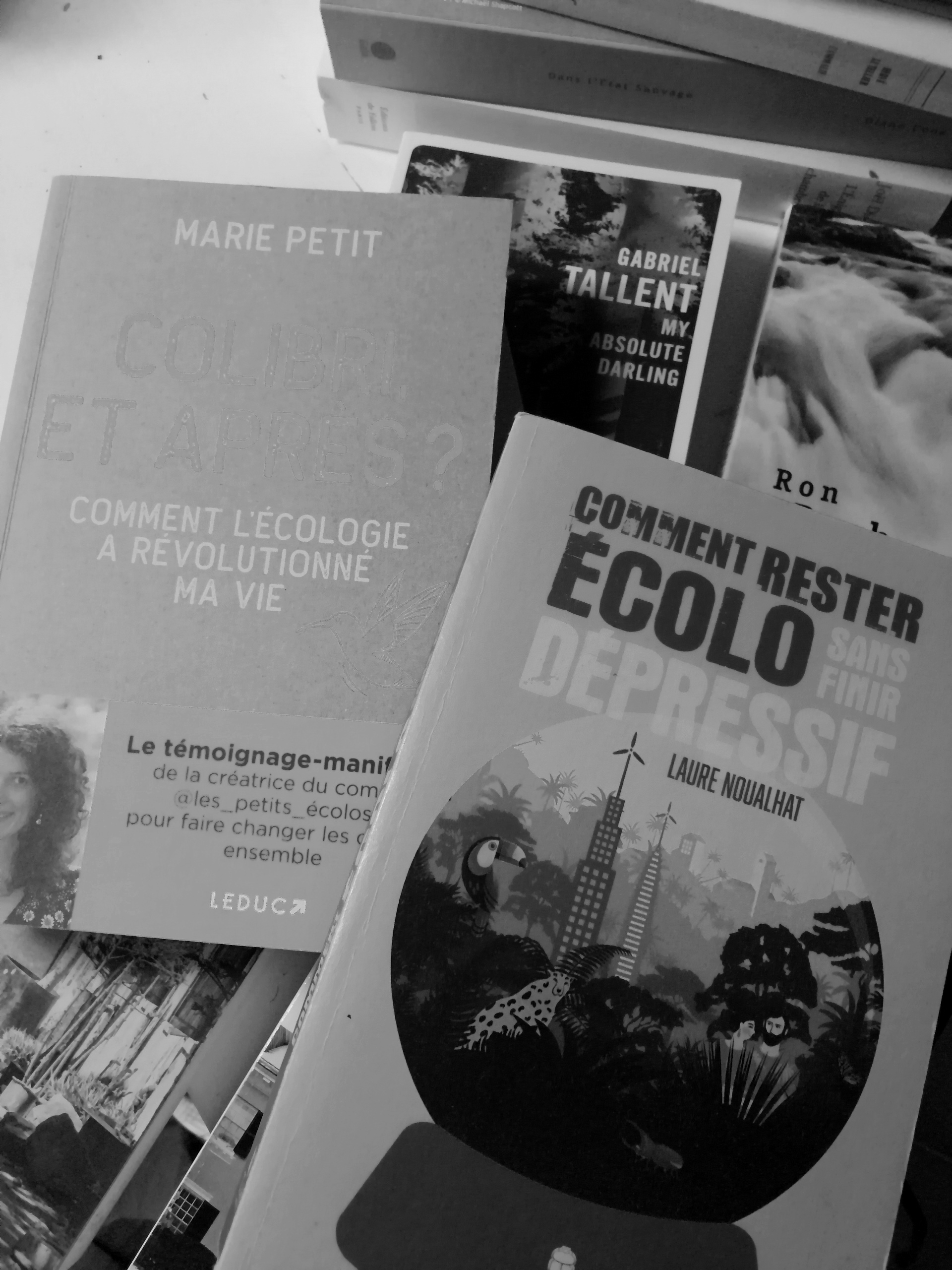J’ai souvent plusieurs livres en route, de styles différents, pour parfois créer un peu d’équilibre dans mes lectures. Car il faut bien l’avouer, lorsqu’on lit « comment être écolo sans devenir dépressif » ou « une autre fin du monde est possible » il faut avoir quelques autres lectures plus légères et moins plombantes, il faut bien l’avouer ( pardon pour cette redondance )