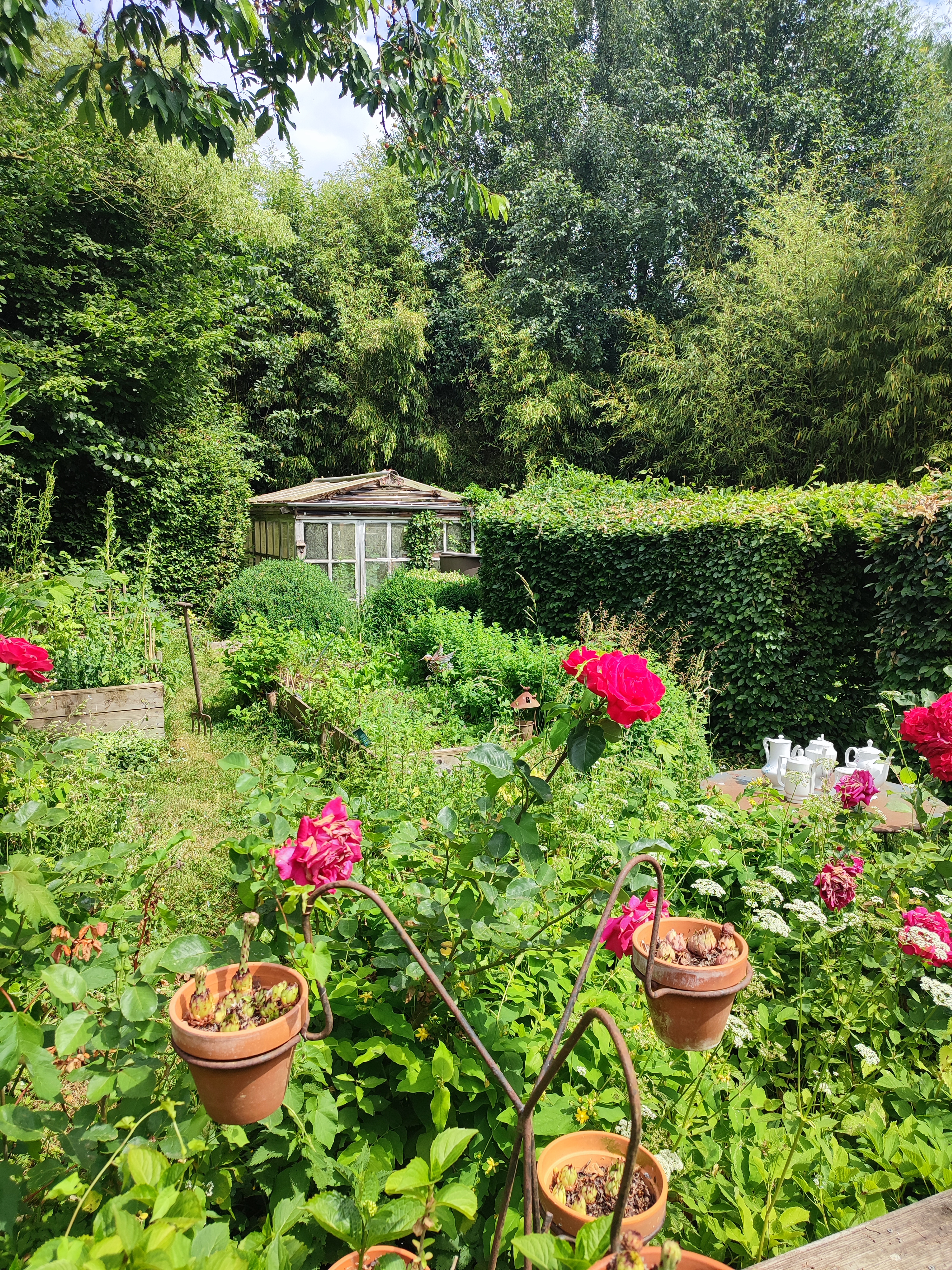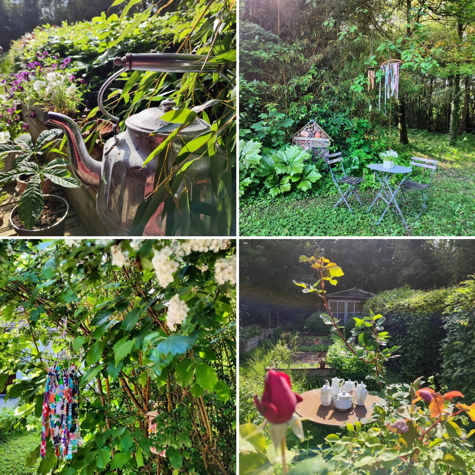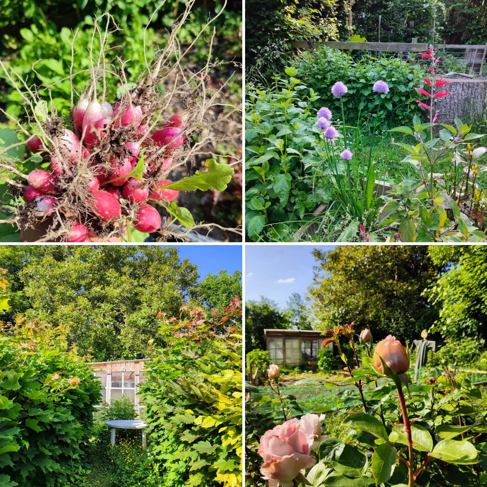 Nous savons que certains ne supporteraient pas très longtemps nos talus d’herbes folles et de fleurs des champs, nos rangées de légumes pleines de fleurs, nos haies débordantes d’oiseaux, de petites bêtes, nos pelouses non tondues ou tondues de façon plus ou moins hautes, mais ce n’est pas grave, chacun son jardin, son potager, son caractère et son ressenti… notre jardin nous plaît comme cela parce qu’il nous ressemble et en dit long sans doute sur notre parcours, notre chemin, notre façon de voir la vie… Encore une fois, ce n’est pas toujours simple de lâcher prise, d’accepter d’ouvrir la porte à un grain de folie dans sa tête, alors commencer par un jardin, un balcon, une rue de son quartier, c’est déjà bien !! c’est militer pour Demain d’une façon tout aussi louable et utile que d’aller manifester une colère, une révolte sur des projets de non sens écologiques comme on en voit sortir de terre un peu partout en France, en Europe et dans le Monde…Chaque geste compte, chaque façon d’agir compte…