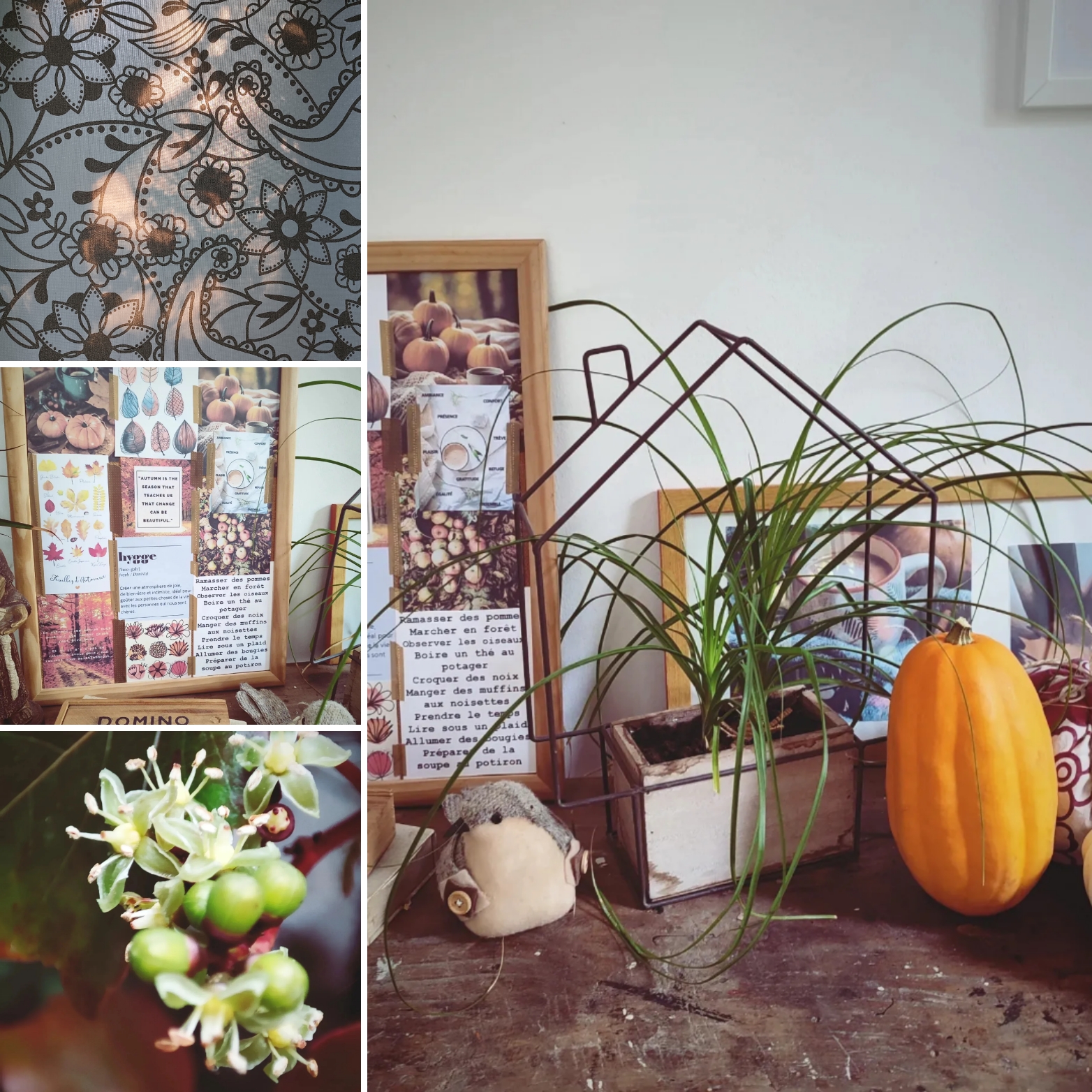 Je crois bien aimer cette saison depuis que je vis à la campagne et encore plus depuis quelques années, en un endroit où les saisons se suivent et sont perceptibles, alors que mon regard sur la nature et ce qui m’entoure s’intensifie. Depuis ma découverte du Hygge, cet art de vivre à la danoise, cet état d’esprit qui donne à créer une atmosphère chaleureuse et à profiter des belles et douces choses de la vie avec nos petites personnes préférées, j’aime encore plus l’automne.