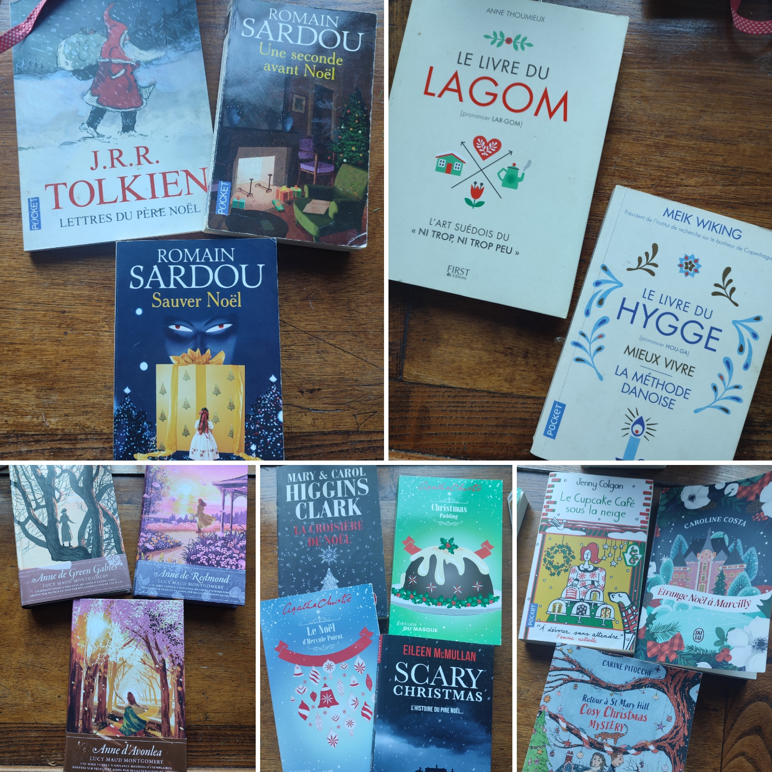 Et relire surtout mes classiques de Noël : « Les lettres du Père Noël » de Tolkien,  » Une seconde avant Noël  » et la suite » Sauver Noël  » de Romain Sardou…mes livres préférés sans aucun doute pour cette période d’avant les fêtes…ils sont la magie qui perdure, l’étincelle d’enfance qui continue de briller, la croyance qu’avec deux ou trois flocons de neige, rien n’est vraiment complètement perdu….Et puis il y a forcément les Cosy christmas mystery, romans feel good à souhait, pour ne pas se triturer le cerveau, pour se la couler douce dans un fauteuil près du feu… Les romans plus policiers avec les incontournables Agatha Christie et Hercule Poirot mais d’autres découverts plus récemment…des romans parfaits au moment de Noël…Puis pour l’hiver, j’aime me replonger dans deux petits livres ressourçants, le hygge danois et le lagom suédois, deux livres dévorés il y a plusieurs années et que je ne me lasse pas de relire pour relancer doucement l’énergie de janvier et février…