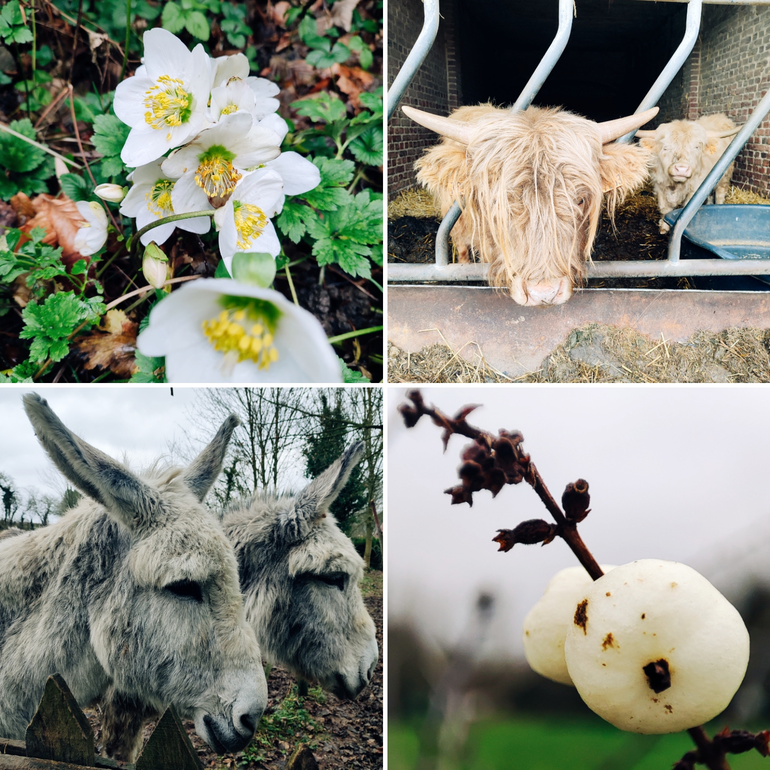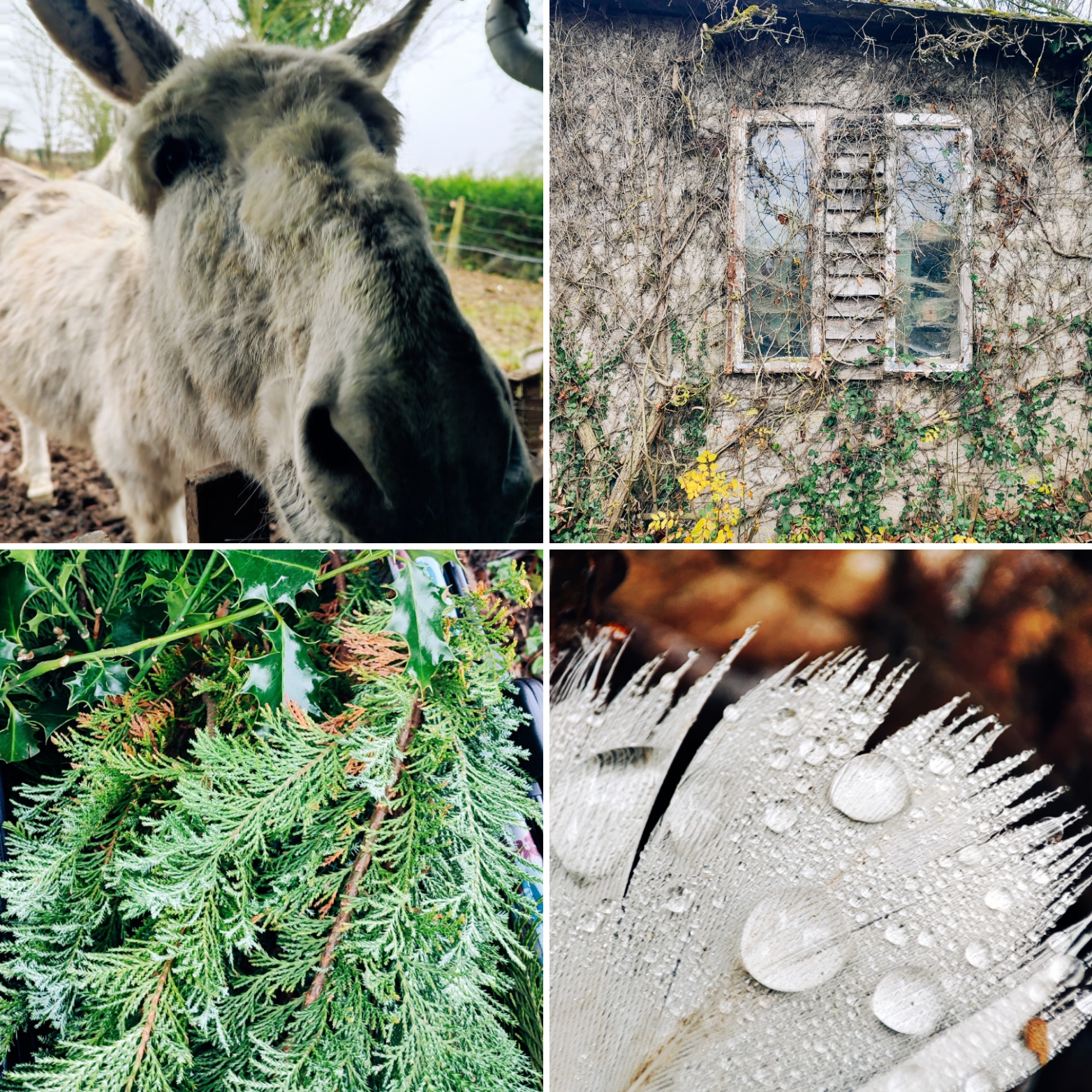 Forcément l’ambiance d’avant Noël, avec ses décorations et petites guirlandes lumineuses, une ambiance installée dans la maison, bien avant le début de l’hiver, au commencement de décembre mais cette ambiance laissera bientôt place à une ambiance plus douce encore, toujours emplie de bougies, de plaids, plus épurée après le foisonnement des fêtes, une ambiance pour faire de l’allégement le maître mot à l’aube d’une année nouvelle…En cette saison de l’hiver, j’aime aussi le calme et le repos d’après les fêtes, l’attente des jours plus longs, j’aime scruter les premiers perce-neige, fleurir la maison de roses de Noël … sentir l’odeur des sapins et du foin pour les ânes dans la grange… J’aime ce temps de l’hiver où je prends un moment pour ces temps d’écriture pour faire le point sur les mois écoulés , pour essayer ensuite de me projeter dans les mois à venir, projets, envies pour une année qui commence au creux de l’hiver , même si le Monde est sombre, y placer des couleurs, de la poésie , des espérances… même si la vie défile, rester dans le présent, le plus possible.