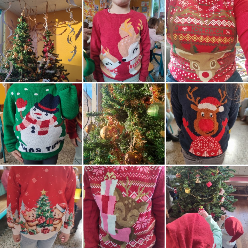 En décembre, même si la période et les journées à l’école sont particulièrement fatigantes et chargées, j’aime à me dire que j’ai de la chance de pouvoir faire vivre encore et encore la magie dans les yeux et la tête des enfants… Nous ne manquons jamais de prendre en photos les pulls et autres bonnets dans la classe, d’écouter des histoires de lutins et de rennes, de chanter des classiques au son des grelots, de découvrir des lettres et des surprises laissées par le Père Noël en personne et cela suffit à chasser la fatigue et à effacer les événements plus difficiles à vivre !