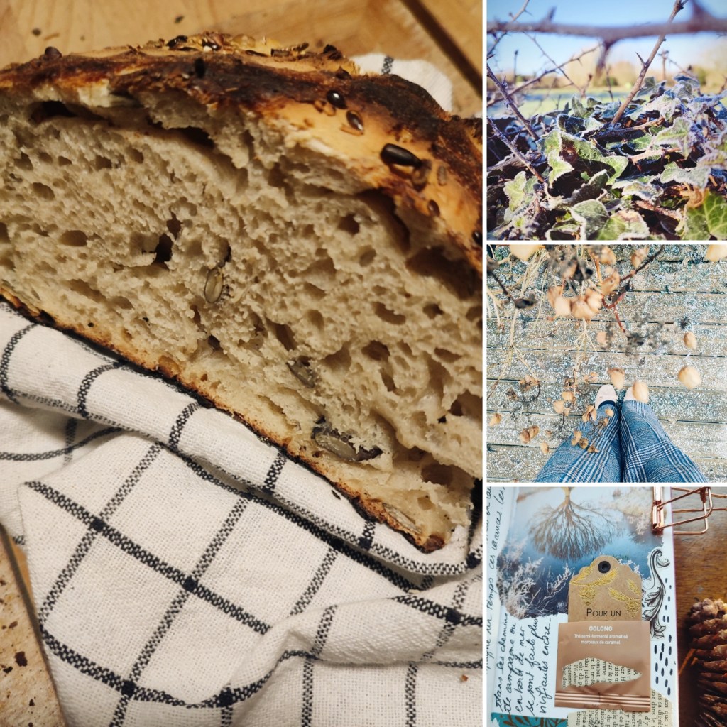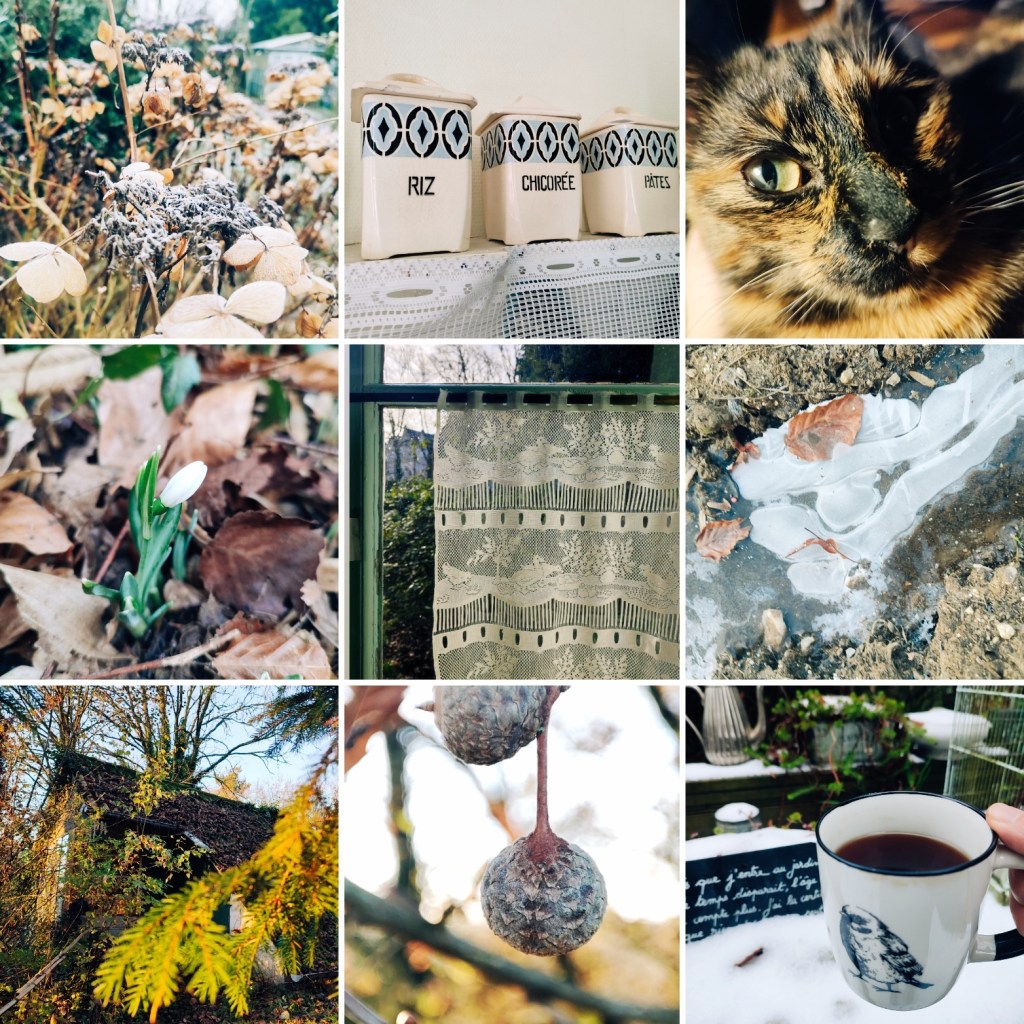 De la joie des petites choses. C’est aussi de cela aussi sans doute dont je veux parler et qui terminera ce billet. D’un bon livre qui se termine bien. D’une tasse de thé, noir de préférence. D’une jolie carte ou d’un courrier surprise reçus. D’un nouvel insecte observé au jardin. Des légumes récoltés. Du sourire d’un enfant en récréation ou dans la classe qui arrive à faire quelque chose qu’il n’arrivait pas avant. Du ronronnement d’un chat. D’une photographie réussie. D’une jolie table préparée pour une occasion particulière ou pas particulière. D’un brunch partagé. D’une jolie broderie. D’un collage qui rend bien. De mots qui trouvent écho. De la douceur des oreilles d’un âne. D’une bouchée de scone avec de la confiture. Du vol d’une buse au dessus de ma tête. Du temps partagé avec mon homme. Des retrouvailles avec mes petites personnes préférées. D’un petit mot gentil. D’un bon pain qui sort du four à bois. Du premier perce-neige. Du premier vol d’une petite mésange….