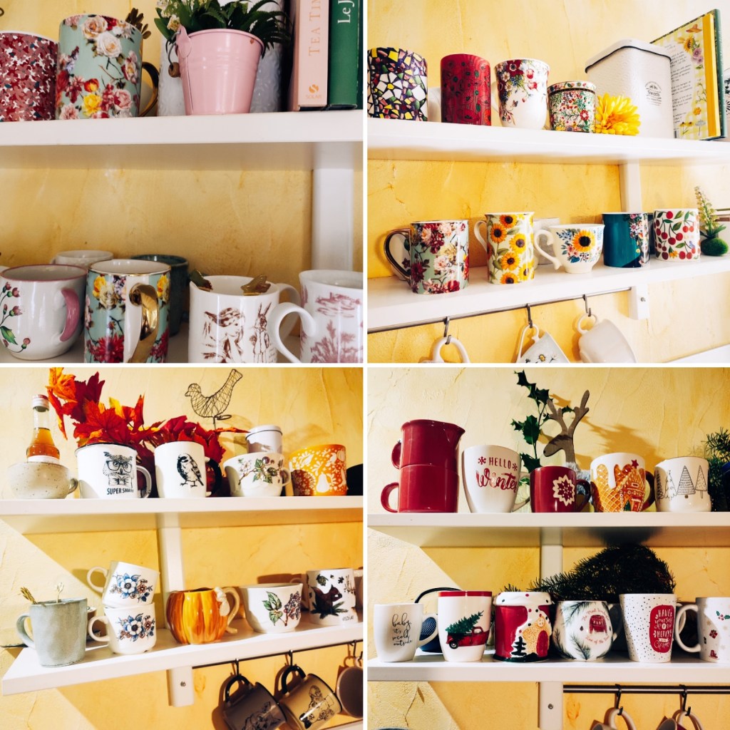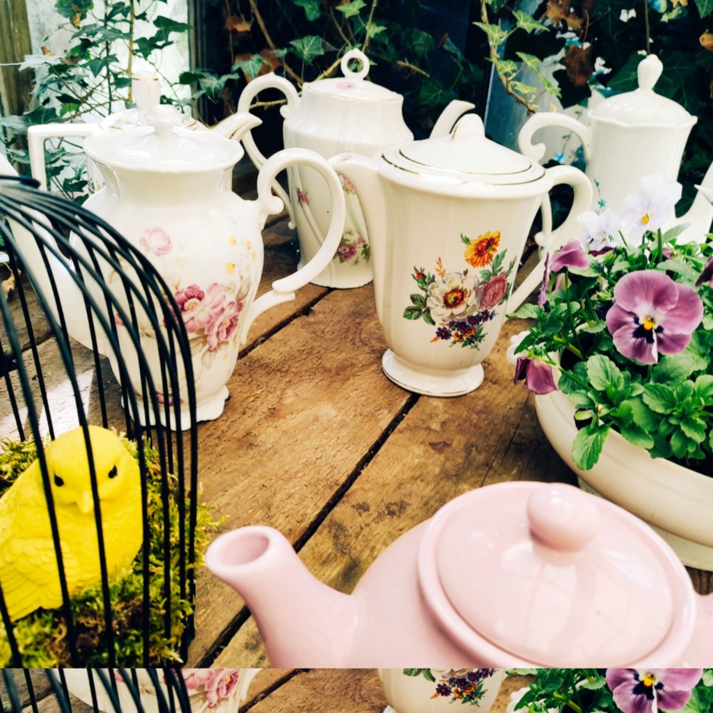 Des collections de tasses à thé pour chaque saison et des jolies boîtes à thé, remplies de thé noir surtout, parfumés selon les mois. Mais aussi une collection de vieilles théières trouvées en ressourcerie pour égayer les appuis de fenêtre aux beaux jours.