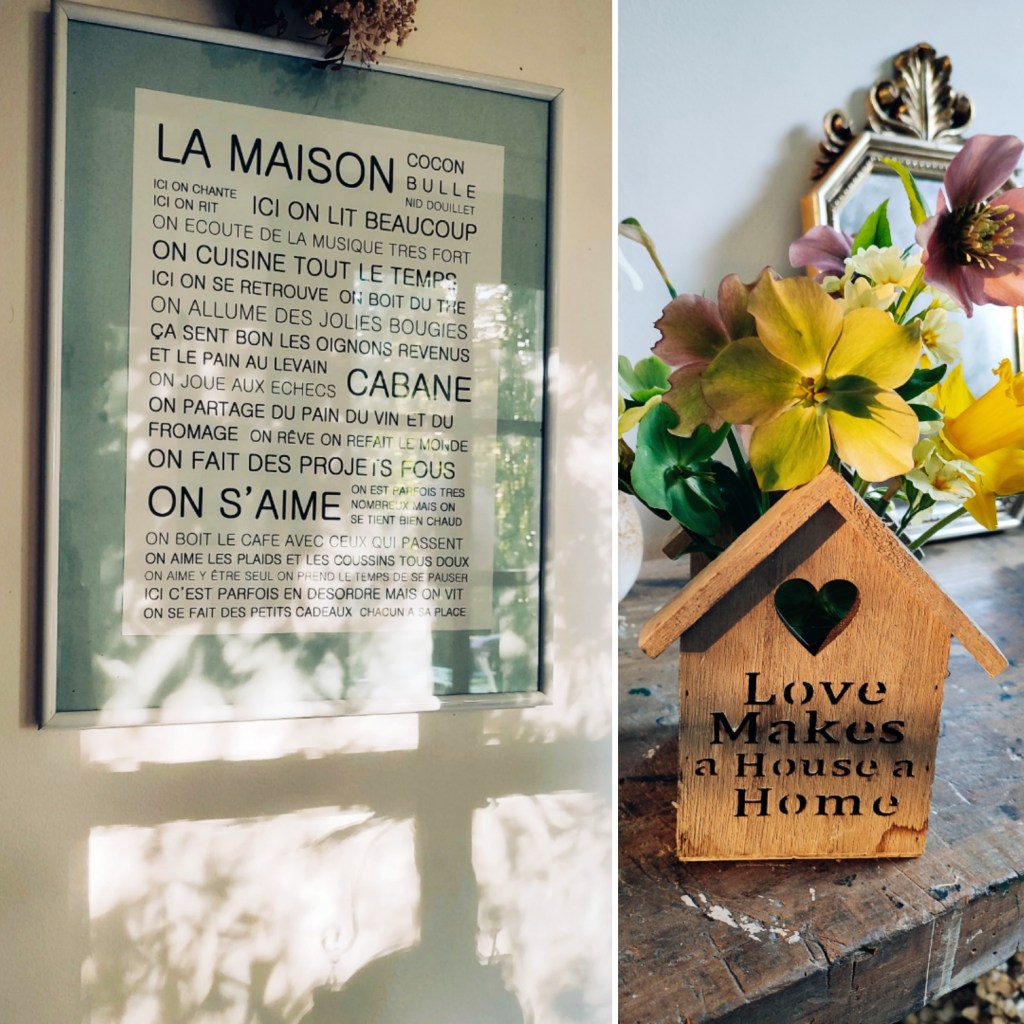 j’ai déjà eu l’occasion je pense de vous parler de cette petite citation trouvée sur un cache pot il y a quelques semaines : » l’amour fait de la maison un foyer »